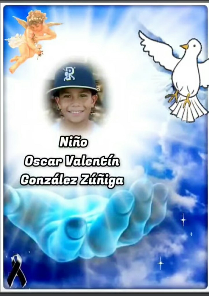 Con Profunda Pena y Tristeza Participamos el Sensible Fallecimiento del niño Oscar Valentín González Zúñiga en Accidente Automobilistico a la Edad de 10 Años.