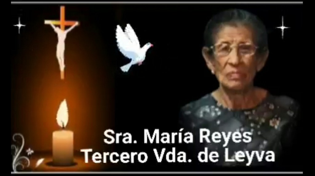 A familiares y amistades de la Sra. María Reyes Tercero Vda. de Leyva se les comunica su sensible fallecimiento a la edad de 94 años.