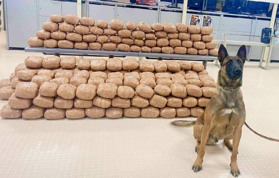 El sujeto fue remitido a una inspección secundaria cuando un canino alertó de la presencia de contrabando en el vehículo.