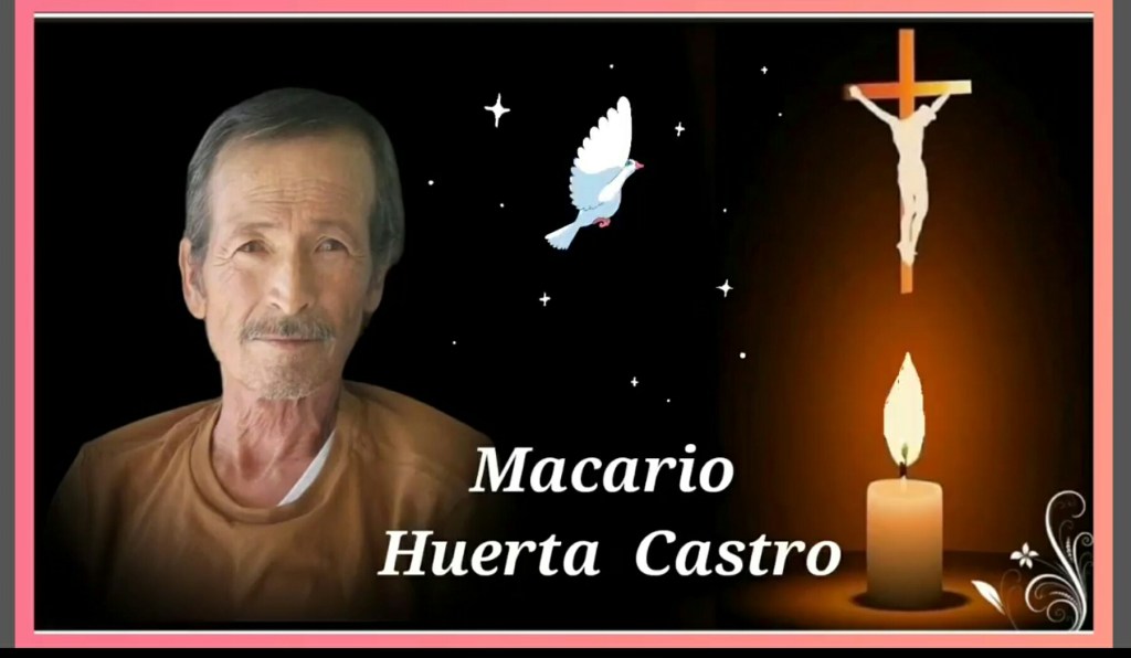 A familiares y amistades del Sr. Macario Huerta Castro se les comunica su sensible fallecimiento el día de hoy a la edad de 61 años.