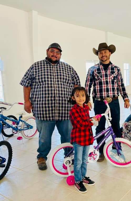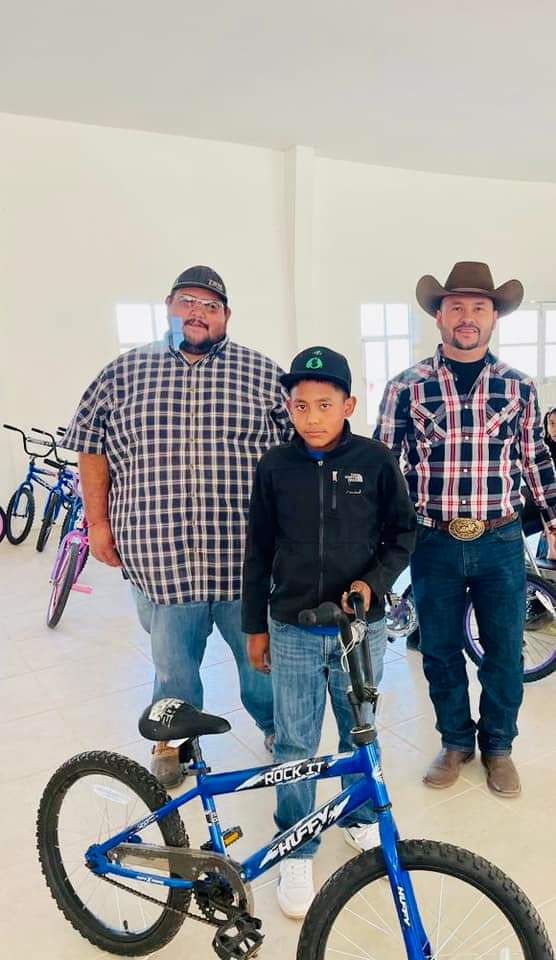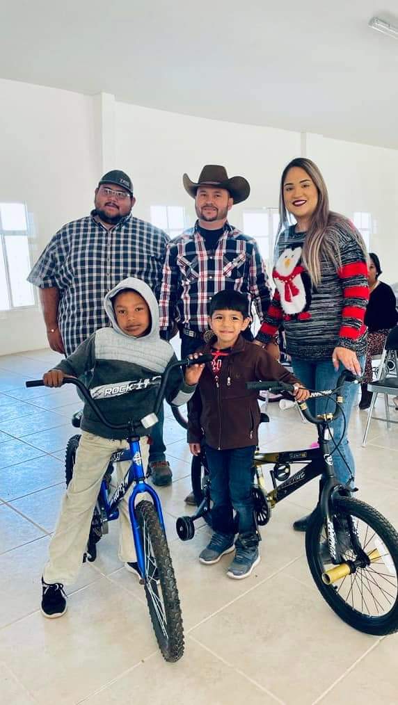 ALAMOS DE SAN ANTONIO. _ El día de hoy llevamos sonrisas a los niños de la Comunidad de Alamos de San Antonio en donde se entregaron 17 bicicletas como regalo, estas por parte de Gallistica San Carlos el Sr. Javier Rodríguez y Sra., en total ellos donaron 20, el resto está destinado para La Hacienda.