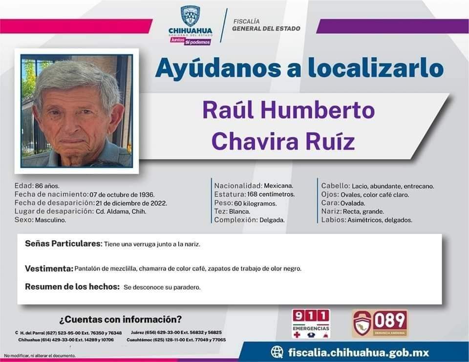 Tras de una semana de búsqueda intensiva, el Ministerio Público del municipio de Aldama reportó la localización del cuerpo sin vida del señor Raúl Humberto C. R., quien se encontraba en calidad de desaparecido desde el pasado 20 de diciembre.