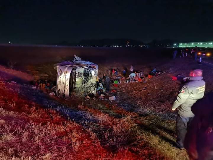 De acuerdo con la narrativa de los hechos, el camión de pasajeros, el cual se dirigía a Ciudad Juárez proveniente del estado de Puebla, volcó en dicho lugar.