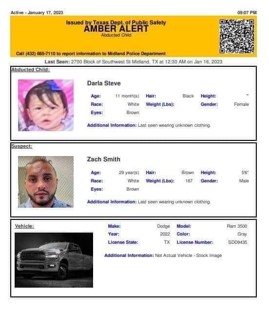 La víctima es una niña blanca de 11 meses, Darla Steve, quien fue vista por última vez con ropa desconocida.