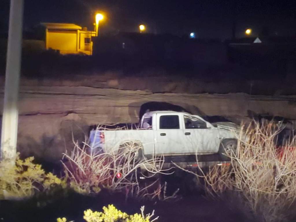 El vehículo accidentado es una pickup Chevrolet silverado color blanco con placas del estado de Chihuahua.