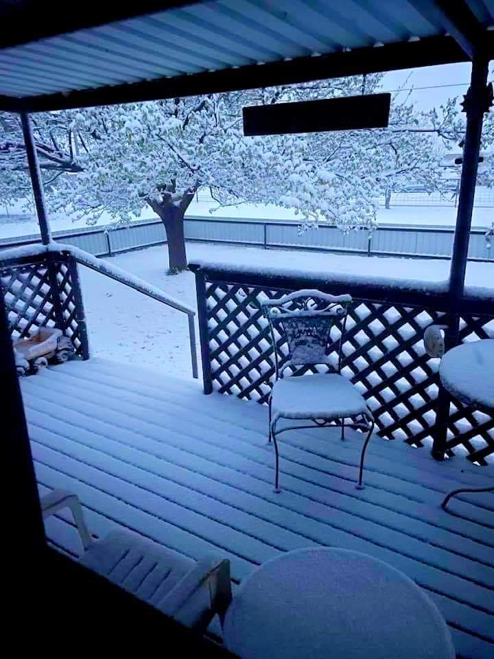 Vacaciones de primavera de 2023. Alpine, Texas. Cerca de 4 pulgadas de nieve en el suelo y sigue cayendo, simplemente hermoso!!.