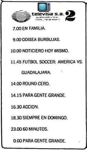 LOCAL UN DOMINGO COMO HOY, PERO HACE 40 AÑOS.ESTA ES LA PROGRAMACIÓN QUE VEÍAMOS TODOS LOS OJINAGUENSES EN LA T.V. PORQUE NADAMAS HABÍA UN CANAL🙄 2 de abril de 2023 mone1970 Deja un comentario QUIEN LA RECUERDA? Comparte esto: Compartir en X (Se abre en una ventana nueva) X Comparte en Facebook (Se abre en una ventana nueva) Facebook Compartir en WhatsApp (Se abre en una ventana nueva) WhatsApp Compartir en Threads (Se abre en una ventana nueva) Threads Compartir en X (Se abre en una ventana nueva) X Me gusta Cargando... Relacionado