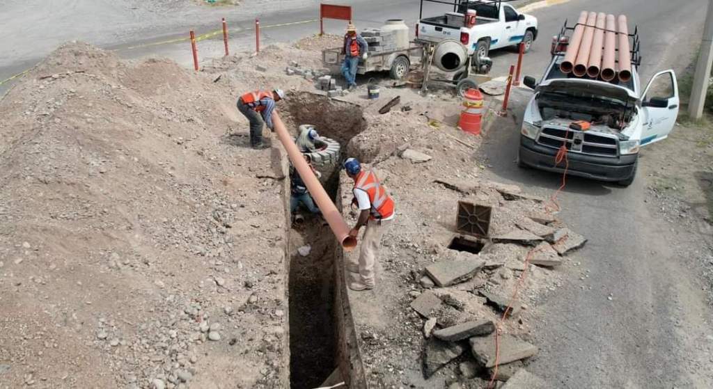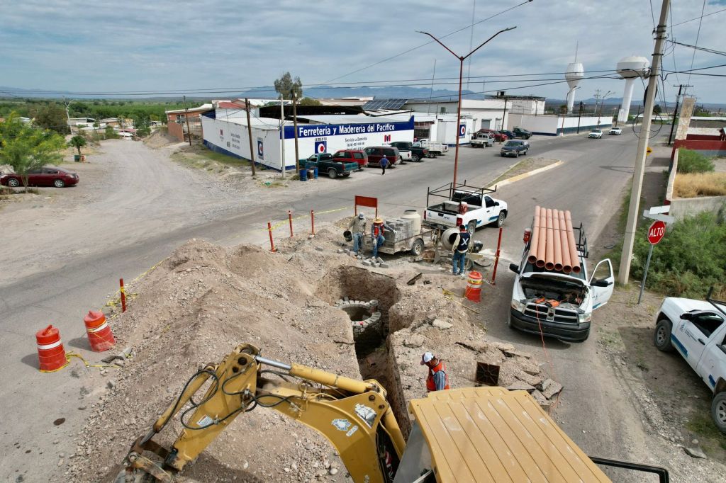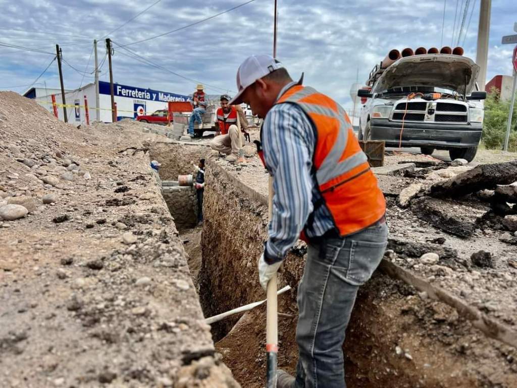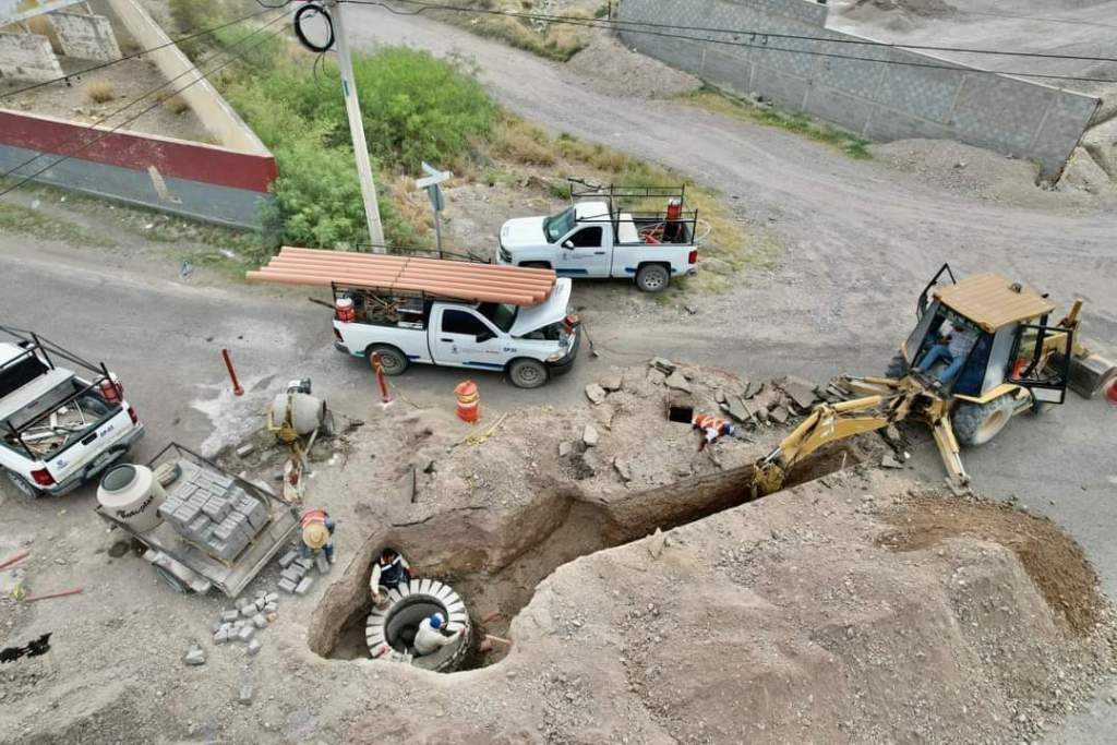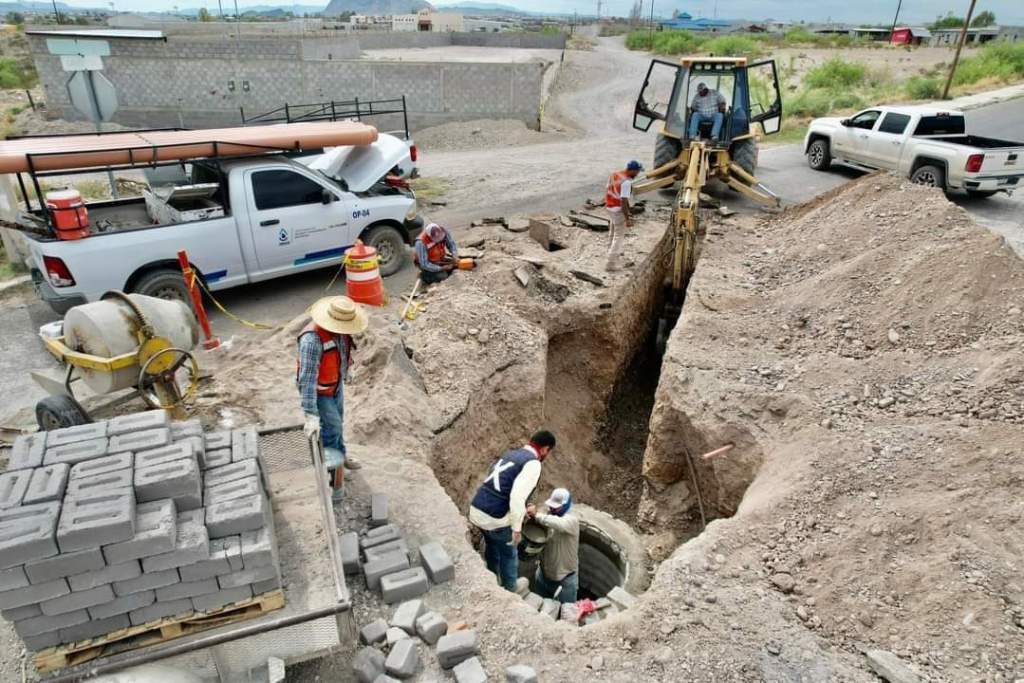 Personal de la JMAS Ojinaga realizando una ampliación de red de alcantarillado y un pozo de visita en la C. 5 de Mayo y Periferico. 👷🏻♂️🕳️💦💧⚠️