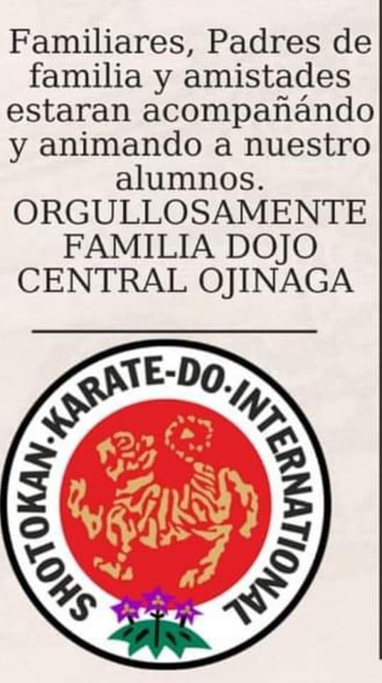 Este domingo 23 de abril, alumnos del dojo central Ojinaga a cargo del sensei Flabio Pérez y su equipo de instructores, estarán viajando a la ciudad de chihuahua para participar en el torneo estatal de karate, estamos orgullosos por el esfuerzo y la dedicación que le han puesto a cada uno de sus entrenamientos y agradecidos con los padres de familia que muestran siempre su apoyo. Estamos seguros de que tendrán una excelente participación, pondrán en alto su dojo y su ciudad. Apoyemos siempre a nuestros deportistas.