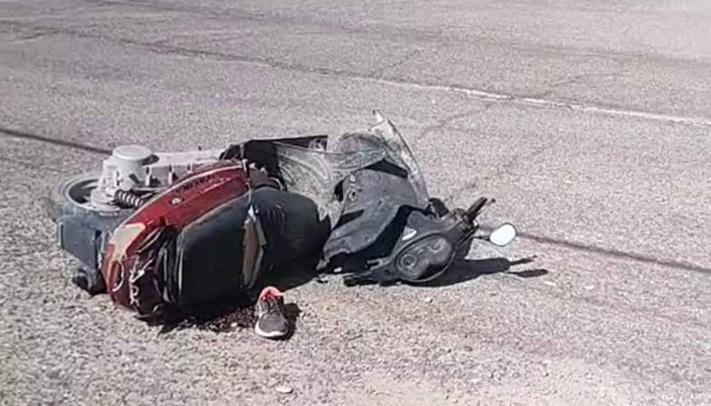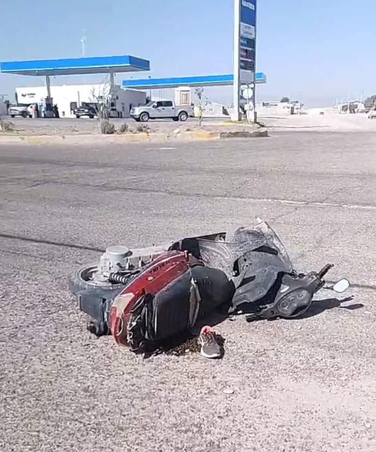 El accidente se registró a las 10:15 am cuando una pareja (masculino y femenina) que circulaba sobre al parecer sobre la carretera a Camargo a bordo de una motoneta termino impactada contra una pick up Dodge ram color negra que al parecer se incorporaba hacia la calle 28.