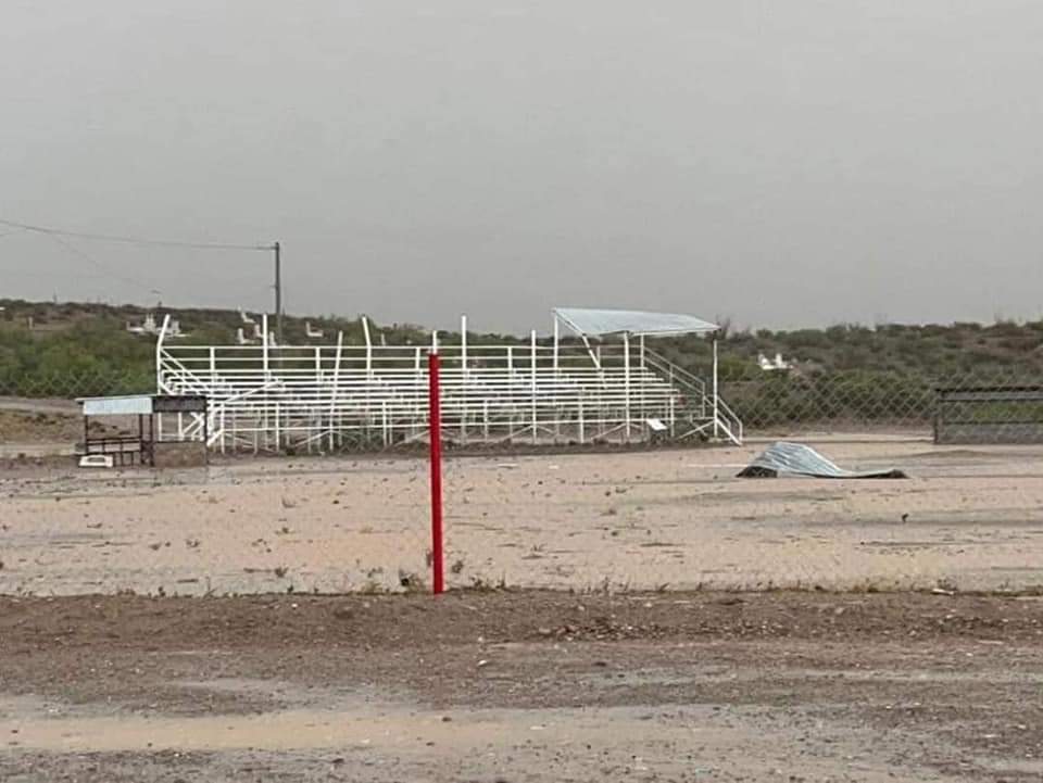 Alrededor de 14 viviendas, dos bodegas y las gradas del parque de béisbol, fueron destechadas durante el paso de un semi-tornado en la comunidad de El Pueblito, en el municipio de Aldama, Chihuahua.