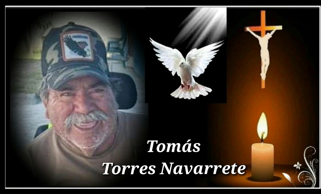 A familiares y amistades del Sr. Tomás Torres Navarrete se les comunica su sensible fallecimiento, es velado en la capilla «El Último Adios» del DIF; Los servicios funerarios serán este jueves con misa de cuerpo presente a las 10 de la mañana en el templo de la divina providencia, de ahí se partirá al panteón El Último Refugio.