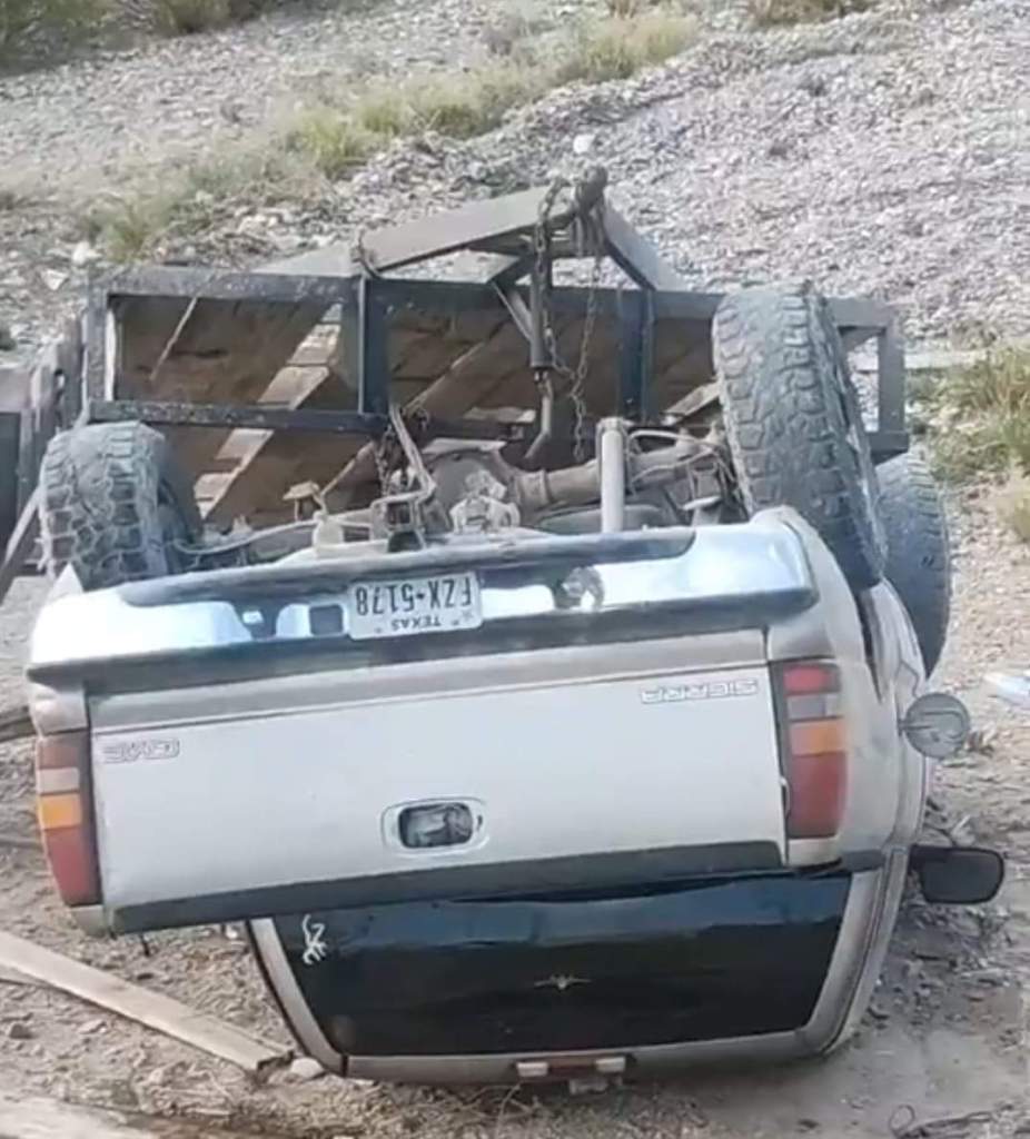 La Pickup con placas de Texas, era trasladada en un un remolque de Ojinaga a Coyame, pero al llegar a la altura de la comunidad «El Divisadero», el mecanismo (por causas desconocidas) se soltó y provocó que la Pickup terminará volcada y con daños considerables en la carrocería.