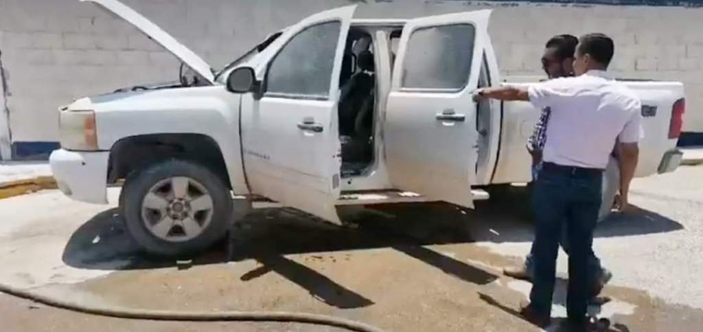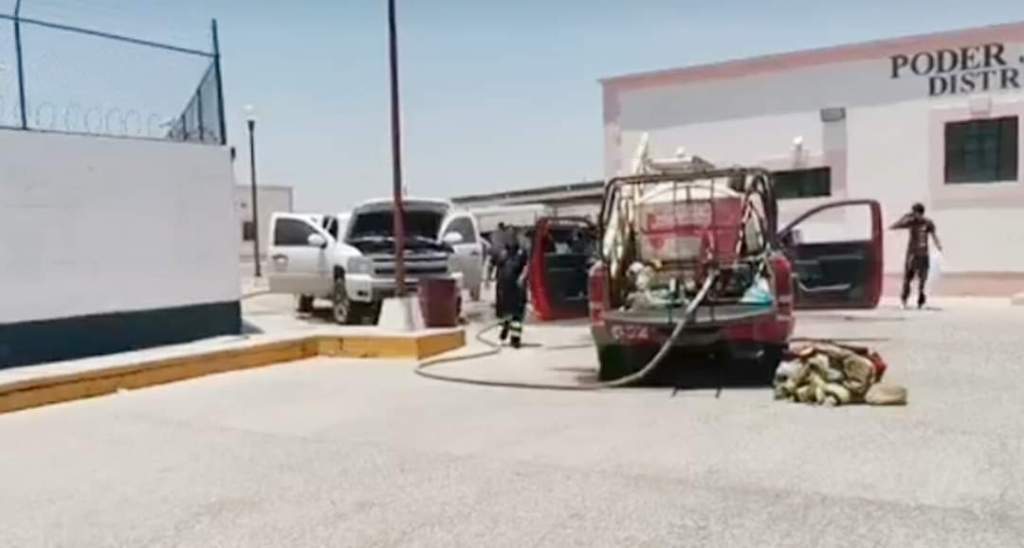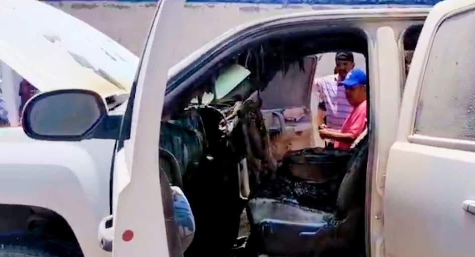 Ante el siniestro personal del juzgado con apoyo de extintores lograron controlar el fuego que ya consumía la cabina y parte del motor de la pick up.