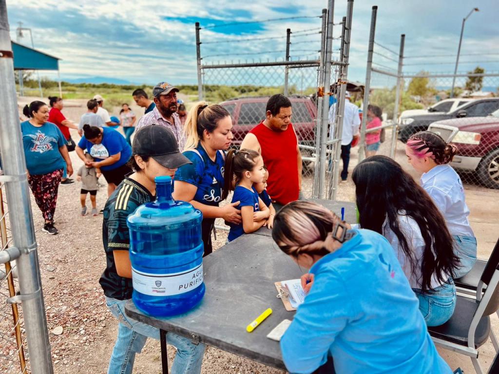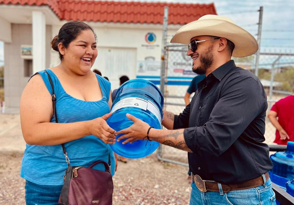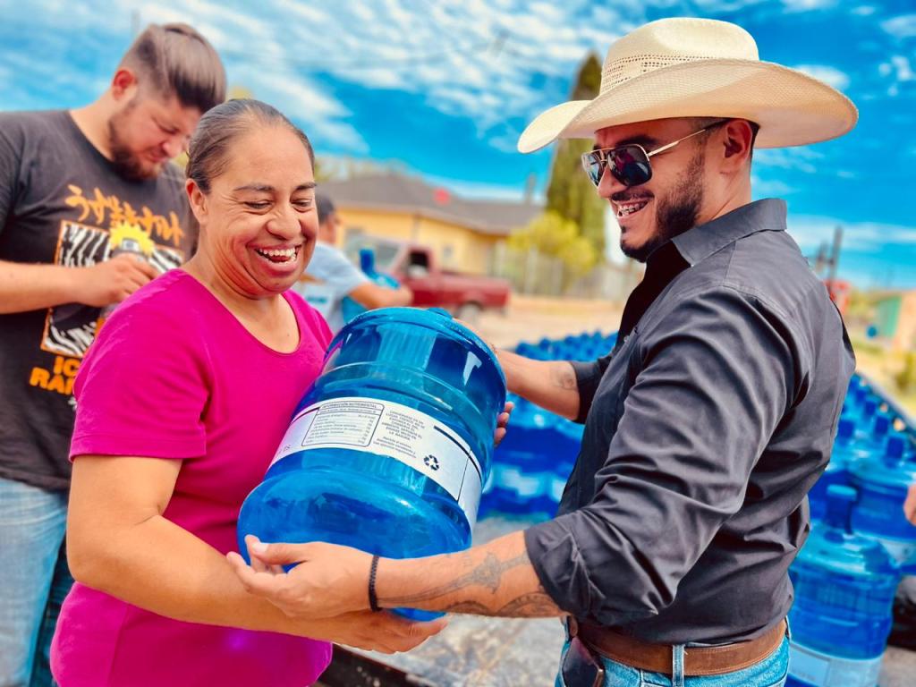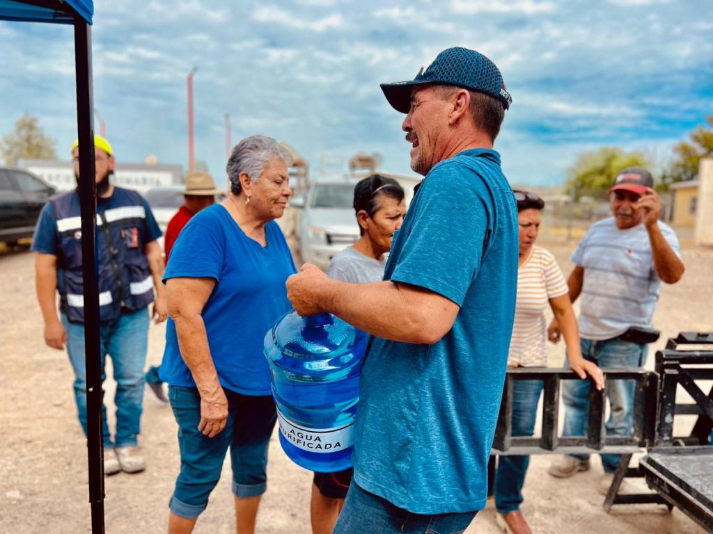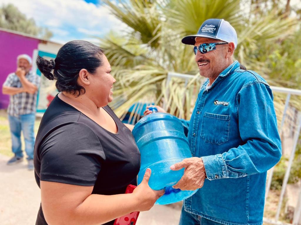 Personal de la JMAS Ojinaga encabezados por el Director Ejecutivo Alonso Pérez, visitaron esta mañana las comunidades del Tecolote, Tierras Nuevas y La Esmeralda, donde se hizo entrega de garrafones de agua, esto para ayudar un poco ante las altas temperaturas que presenta el municipio.