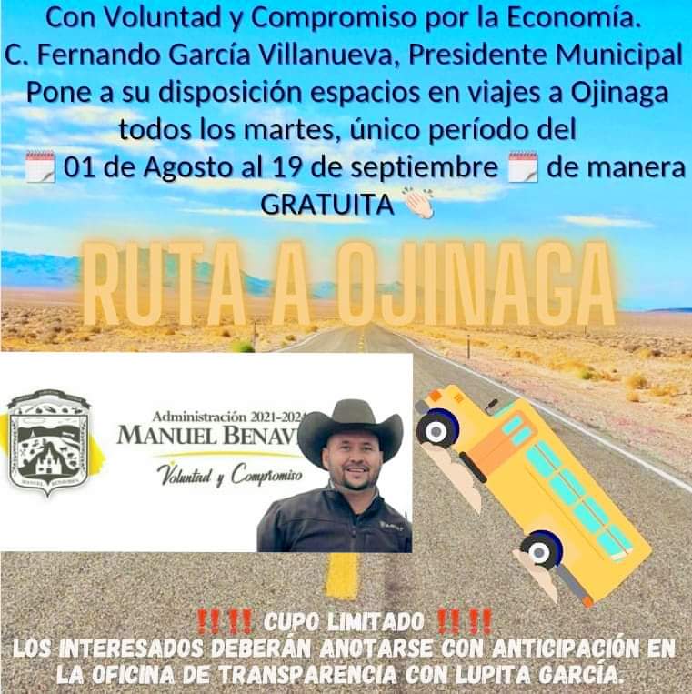 Seguro estoy de que esto es un gran apoyo para todos aquellos que requirieran ir a la Cd. Ojinaga a trámites, asuntos personales, médicos, entre otros.