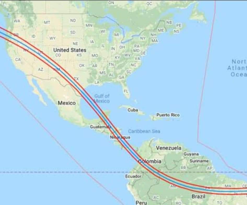 La trayectoria del eclipse comienza sobre el Océano Pacífico y pasa por Oregón, siguiendo hasta cruzar varias ciudades Texas como Odessa, Midland, San Antonio y Corpus Christy. El eclipse continuará hacia el sur, atravesando América Central y Brasil. En Ojinaga sera visto de manera parcial.