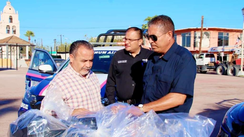 LOCAL.- Siguiendo con el excelente trabajo de gestión el edil municipal Andrés Ramos de Anda, hace entrega de tres patrullas nuevas a la Dirección de Seguridad Pública Municipal, así como de equipo táctico para brindar un mejor servicio a nuestra comunidad.