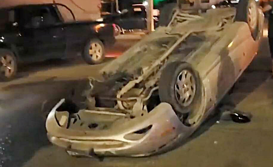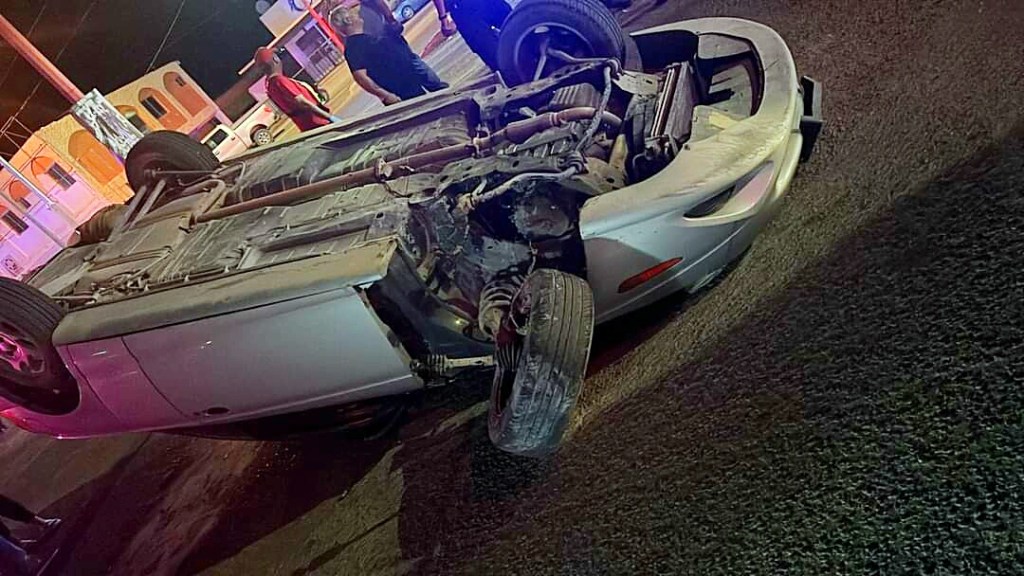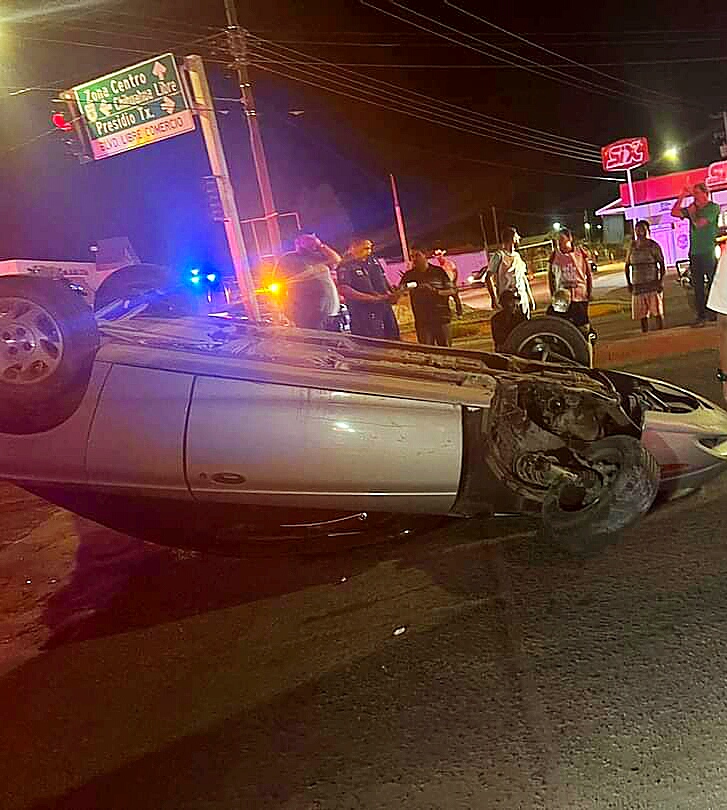 El vehículo con placas del estado de Chihuahua quedó volcado con neumáticos hacia arriba, al parecer fue por el exceso de velocidad.