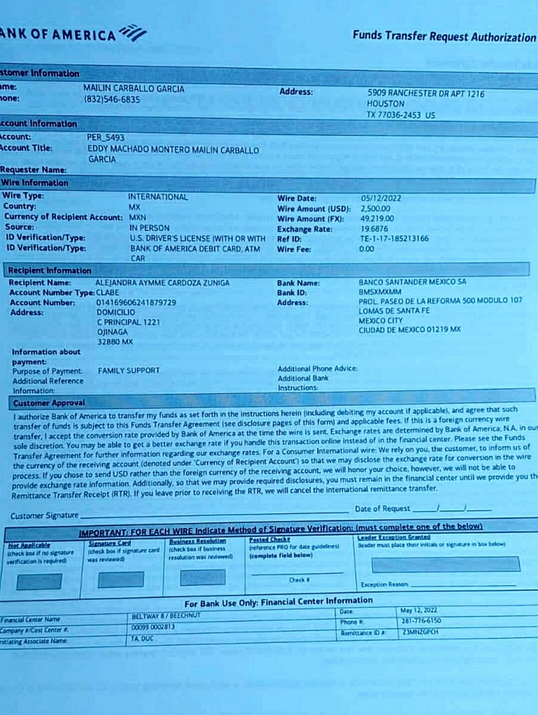 «Buen día Ojinaga, está fulana llamada Alejandra Aymme Cardoza Zuñiga con domicilio en la avenida principal de la colonia el progreso estafó a la familia del cubano con 2500 dólares, ella Contactó a la familia para hacerles creer que era de la Ley y que necesitaba que le enviarán 2500 dólares para pagar un abogado que lo derendiera, la familia en su desesperación cayó en la trampa de esta fuchita y le hicieron el depósito pero era FRAUDE Y ESTAFA»