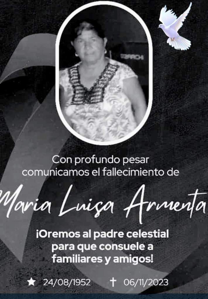 A familiares y amistades de la Sra. María Luisa (Licha) Armenta, se les comunica su sensible fallecimiento el día de hoy a la edad de 71 años.