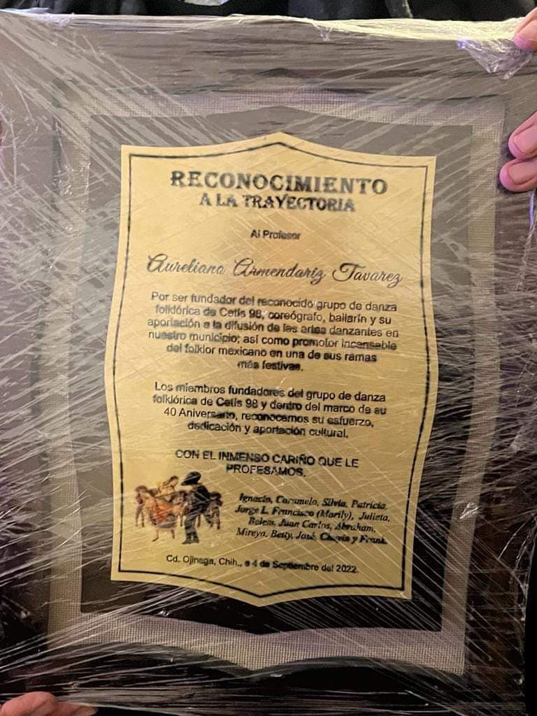 El día de ayer sábado por la tarde se reunió un grupo de exalumnos del Grupo de Danza del CETIS 98, En el Salon del Bikini Bar, para rendirle un merecido Homenaje al Reconocido Profr. de Danza Folklórica C. Mtro. Aureliano Armendáriz Tavarez , el homenaje se llevaría a cabo en el marco de la Celebración de los 40 años de dicha institución, que por razones de salud no pudo asistir.