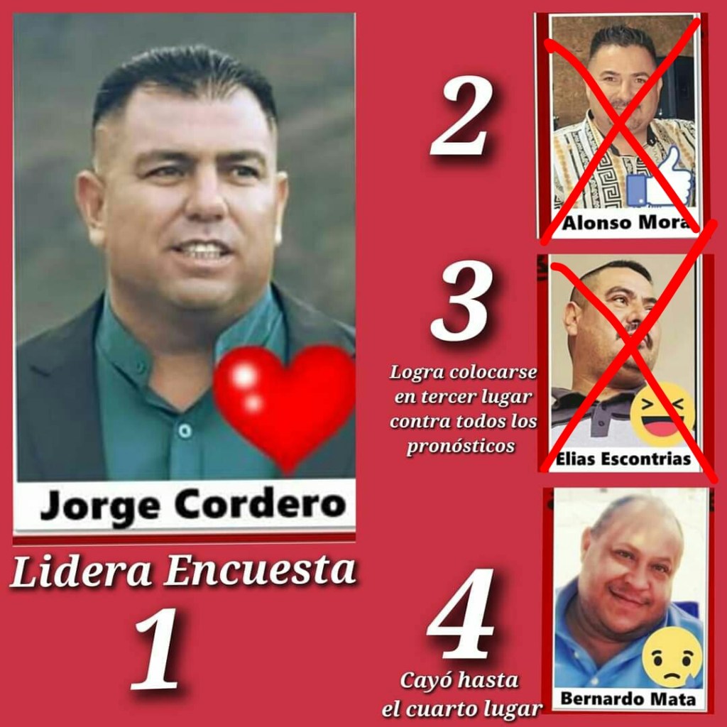 JORGE CORDERO AVENTAJA EN LAS PREFERENCIAS CON %86.