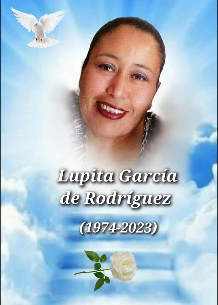 Con Profunda Pena y Dolor, Participamos el Sensible Fallecimiento de la Sra. Lupita García de Rodríguez el día de hoy a la Edad de 49 Años.