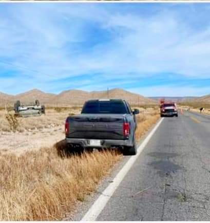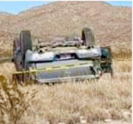 ALDAMA. -Esta tarde a la altura del kilómetro 46 de la carretera a Ojinaga, se registró un accidente, un choque-volcadura, donde falleció un hombre de 86 años de edad, mientras la conductora y su mamá, resultaron lesionadas, por lo que fueron trasladadas a un hospital para su atención médica.