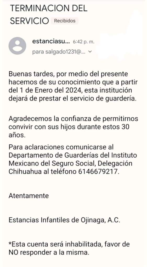 CIERRAN LA GUARDERÍA DEL IMSS EN OJINAGA DESPUÉS DE 30 AÑOS DE SERVICIO