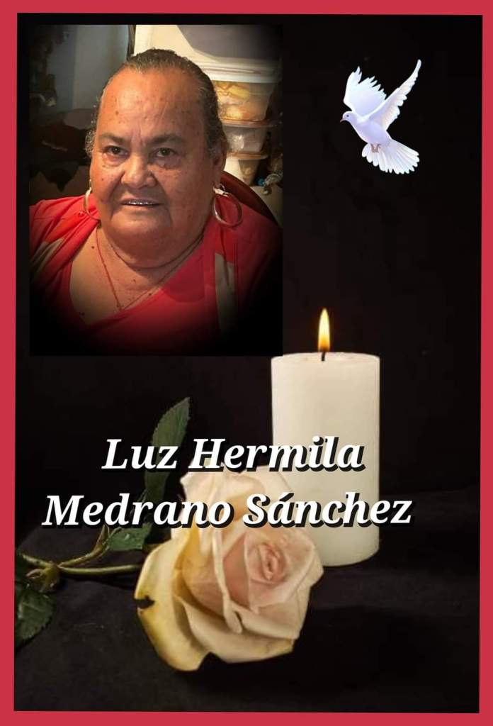 A familiares y amistades de la Sra. Luz Hermila Medrano Sánchez (Mila) se les comunica su sencible fallecimiento, esta siendo velada en funeraria de valle 2; Los servicios funerarios serán este lunes 15 de enero con misa de cuerpo presente a las 10 de la mañana en el santuario de Guadalupe y de ahi se partirá al panteón de Barrenos.