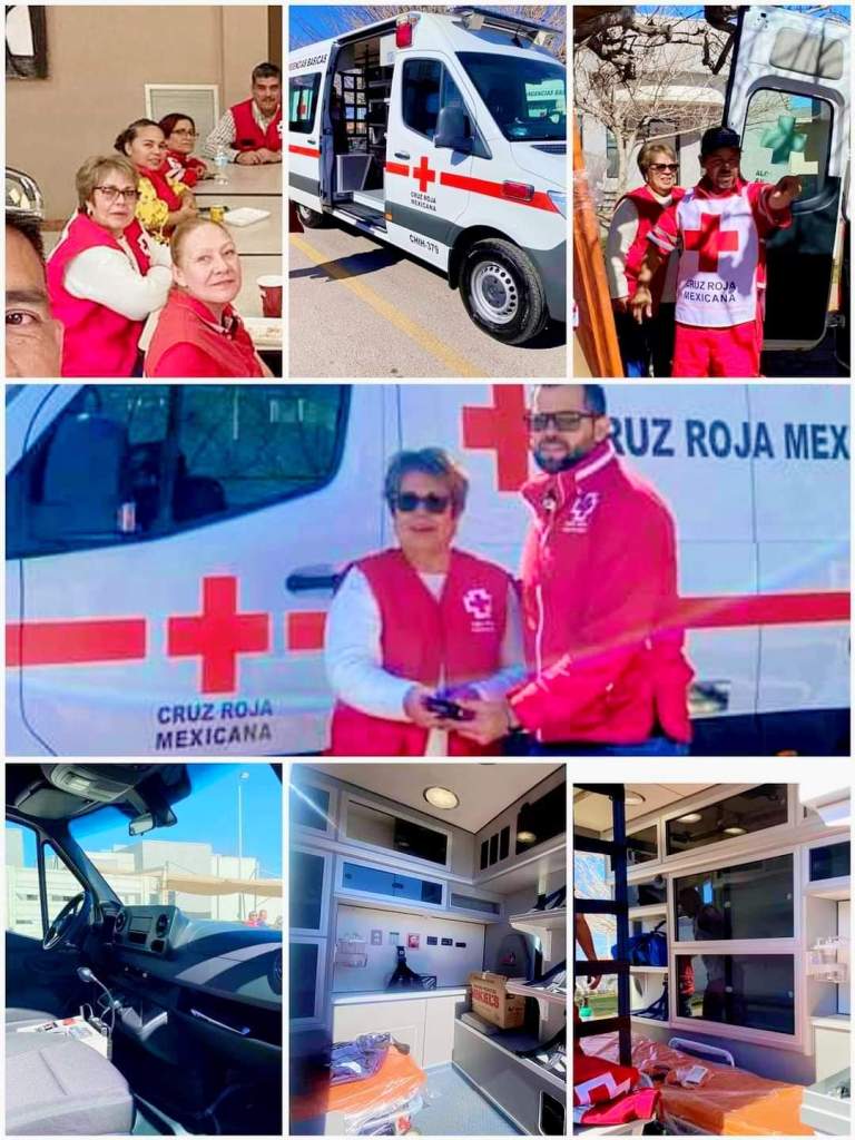 Las delegaciones de cruz roja beneficiadas son Nuevos Casos Grandes con una unidad de rescate, Madera y Ojinaga con una ambulancia nueva equipada..