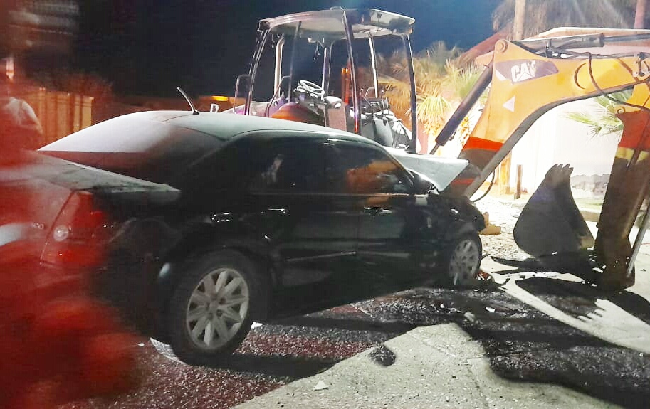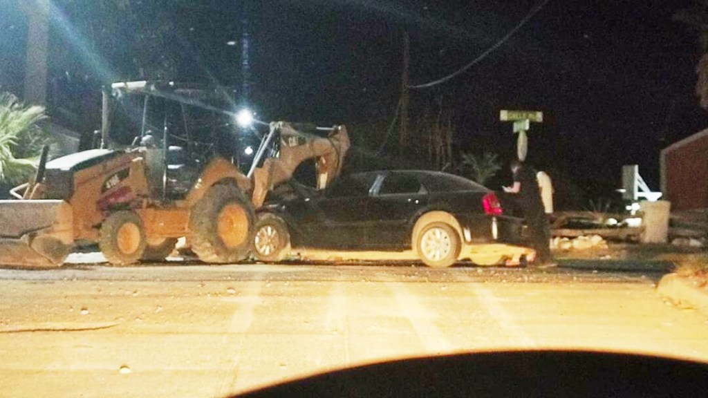 Un choque contra una máquina pesada que se encontraba en el cruce de las calles Juárez y 14 nte. se registró mientras usted dormía.