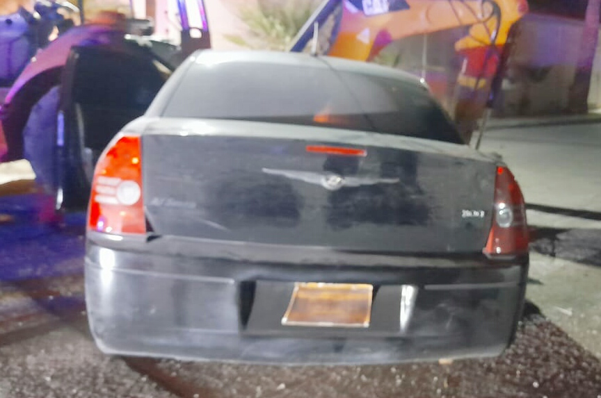 En el lugar uno de los tripulantes del vehiculo color negro que no había ningún señalamiento por lo que no vieron la máquina ahí hasta que chocaron con ella. El percance se suscitó muy cerquita del asilo de ancianos Katen.
