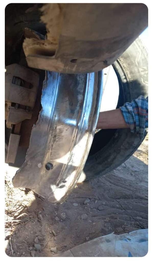 Otro ciudadano que sufre daños en su vehículo al transitar por la carretera federal Aldama Ojinaga a la altura de la salida de Aldama hasta el entronque de Coyame del Sotol y Ojinaga.