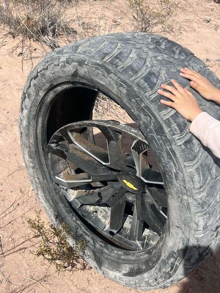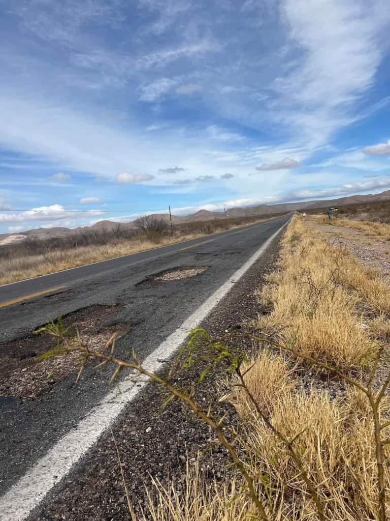 ALDAMA. -Una familia viajaba por la carretera a la ciudad de Ojinaga, pero al pasar por uno de los grandes baches, la llanta delantera del lado del copiloto, se tronó, de tal manera que el rin se quebró.
