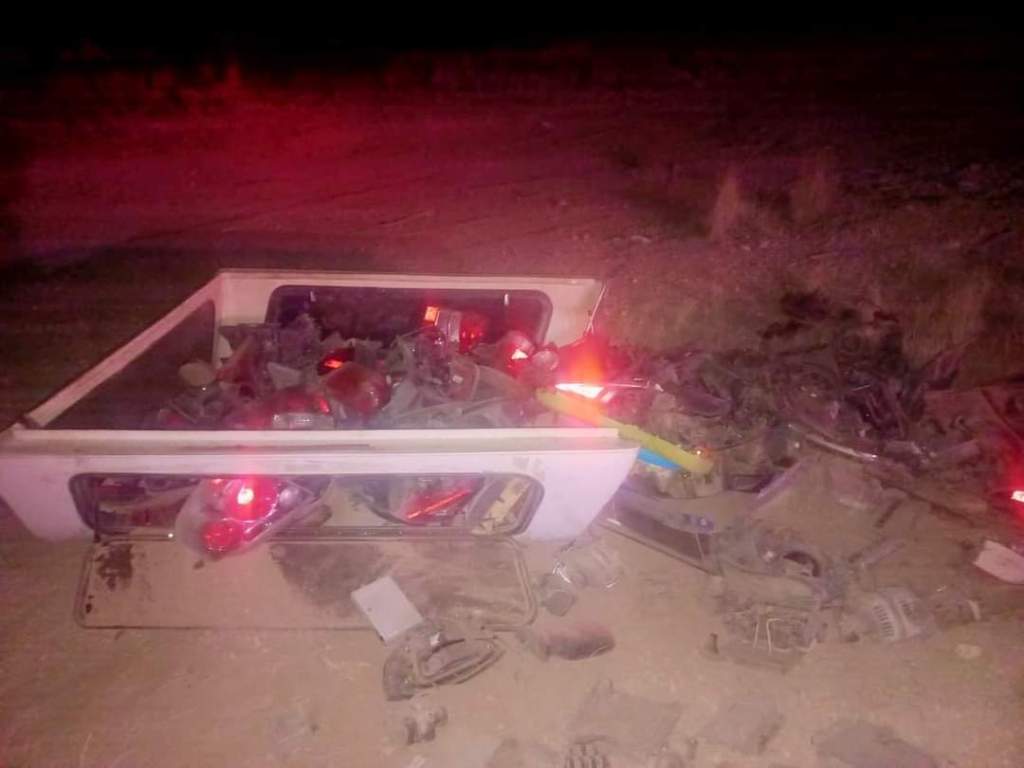 Se registra volcadura en el kilómetro 82+500 de la carretera Ojinaga-Chihuahua a la altura de el huerfano, el vehículo involucrado es una pickup chevrolet silverado color blanco; Transportaba partes de automóvil.