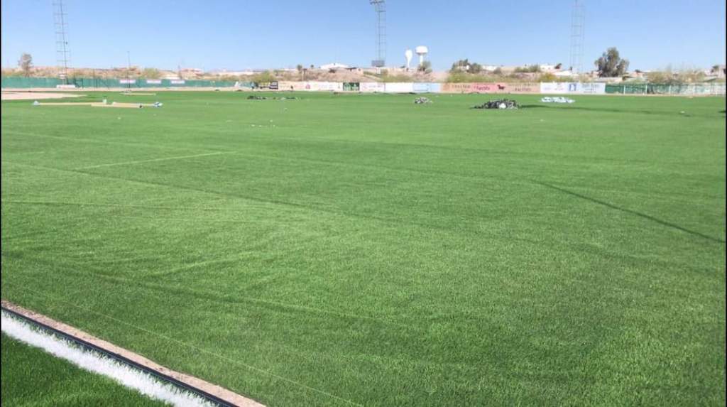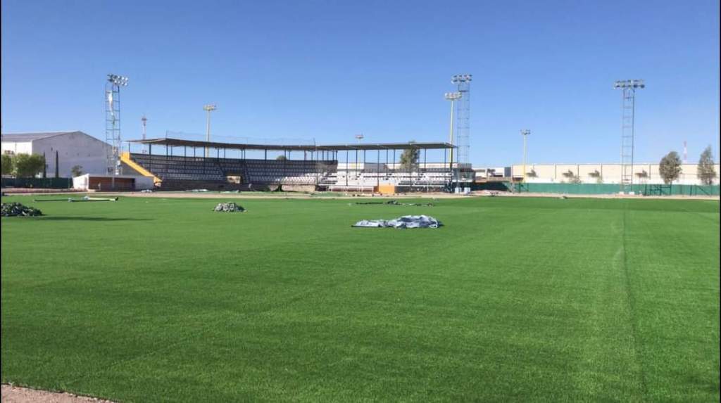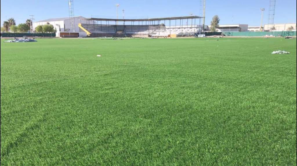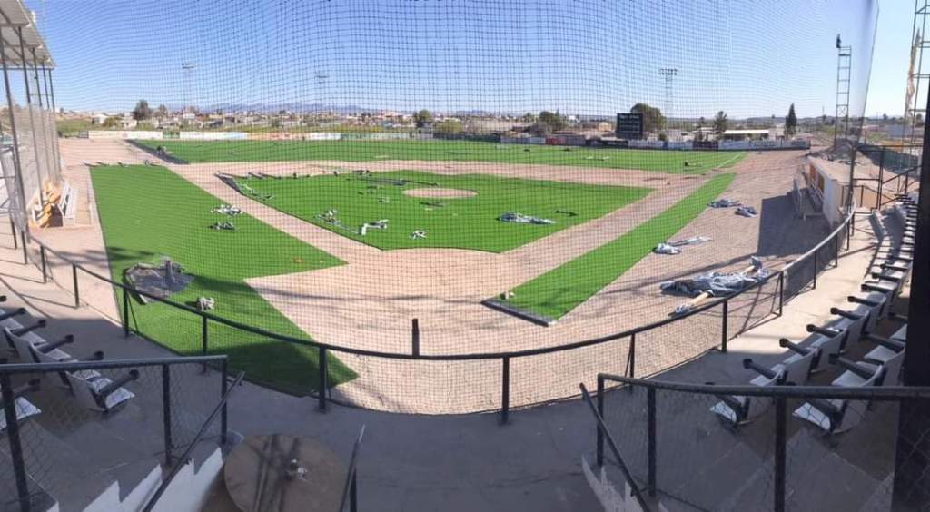 LOCAL.- A unas semanas de haber iniciado los trabajos de colocación de pasto sintético en el estadio de béisbol José García Mendoza, de esta ciudad de Ojinaga, y que gracias a la excelente gestión del Presidente Municipal Andrés Ramos de Anda, la Gobernadora del Estado la Maestra María Eugenia Campos Galván, trae para los deportistas y aficionados de esta frontera, lleva un avance importante y ya se puede ver, o por lo menos podemos imaginar como estará quedando al término de este gran proyecto.