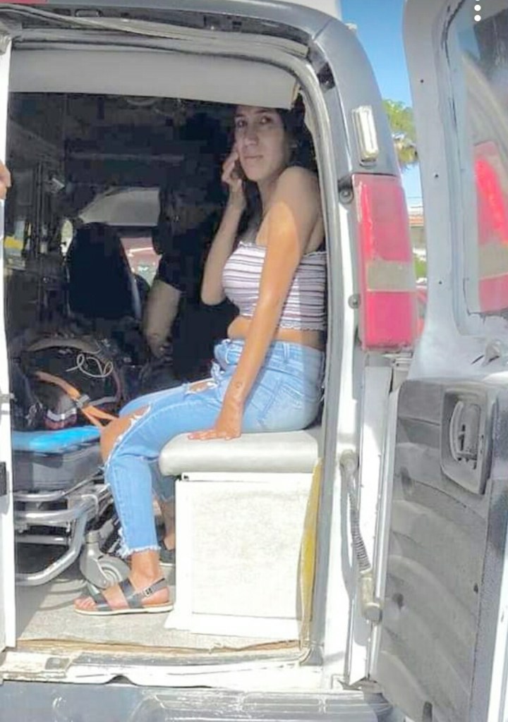 Una ambulancia acudió al lugar para brindar primeros auxilios a mujer.