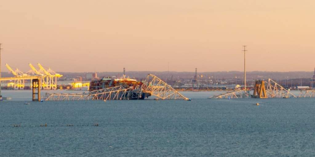 El puente Francis Scott Key, que lleva la Interestatal 695 sobre el río Patapsco al sureste de la zona metropolitana de Baltimore, se vino abajo luego de que un carguero colisionara con un pilar que sostenía una de sus partes.