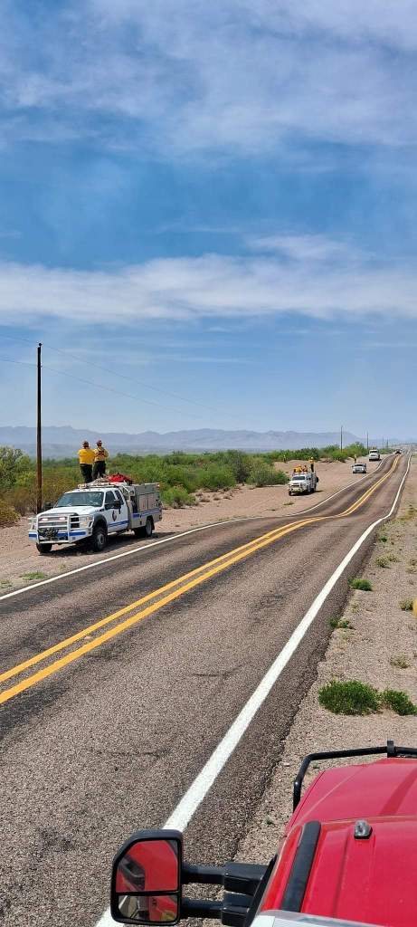 «Se apoyó a nuestros Hermanos de Presidio Volunteer Fire Department durante 2 dias en incendio forestal, en el cual se trabajó de la mano con personal de Texas A&M Forest Service y Sistema de ayuda mutua Interestatal de Texas (TIFMAS) los cuales con apoyo aéreo ayudaron en las labores de contención. Nuestra labor fue realizar líneas de contra fuego y contención en la parte Norte del Incendio, además de proteger los sistemas de energía eléctrica que abastecen las comunidades de Ruidosa y Candelaria de la mano de nuestros hermanos de Bomberos y Rescate Voluntarios Col. Oasis».