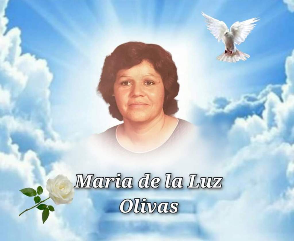 A familiares y amistades de la Sra. Maria de la luz Olivas se les comunica de su sensible fallecimiento el día de hoy en Ojinaga a la edad de 72 años, será velada hoy y mañana en el ejido el paradero, después se avisa de sus funerales.