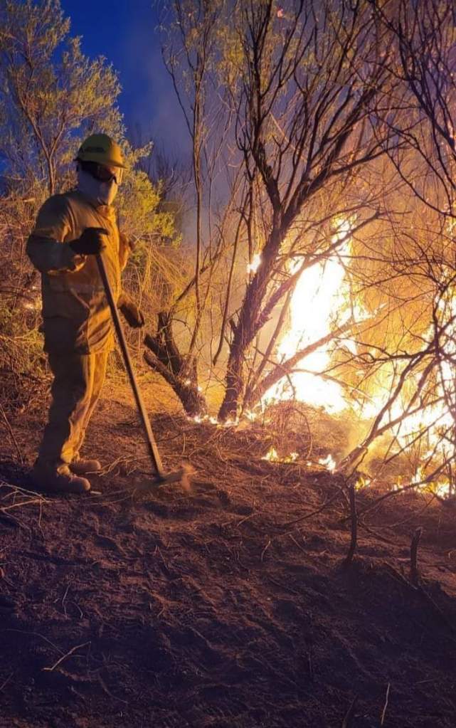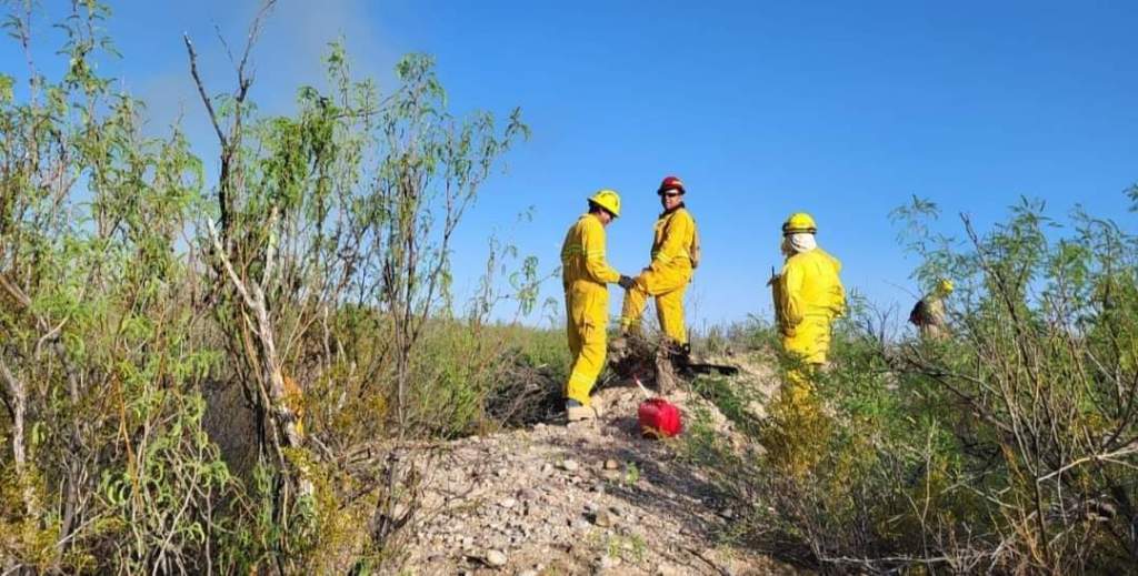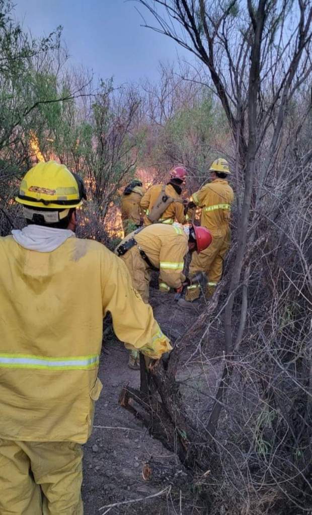 OJINAGA. -La tarde del lunes elementos de bomberos voluntarios de Ojinaga acudieron a un reporte de incendio forestal en la misma zona de dónde días antes habían combatido pero en esta ocasión de lado mexicano a la altura de San Antonio del bravo.