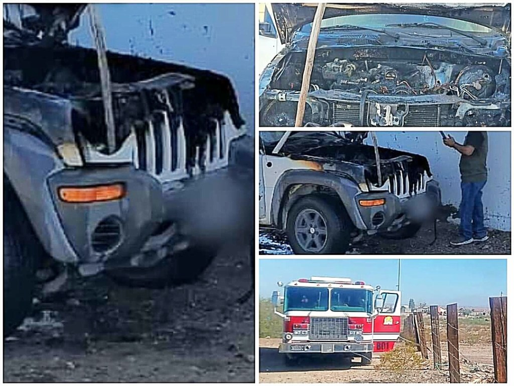 El incidente se registró a las 10:20 de la mañana, siendo el vehículo siniestrado Jeep Liberty color blanco con placas de Texas mismo que se encontraba estacionado al momento que se registró el incendio en la parte frontal donde se ubica el motor.