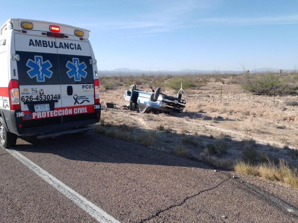 SE REGISTRA VOLCADURA POR LA CARRETERA DE CUOTA OJINAGA-CHIHUAHUA CERCA DE LA CASETA. SE REPORTAN DAÑOS MATERIALES Y PERSONAS CON LESIONES LEVES.