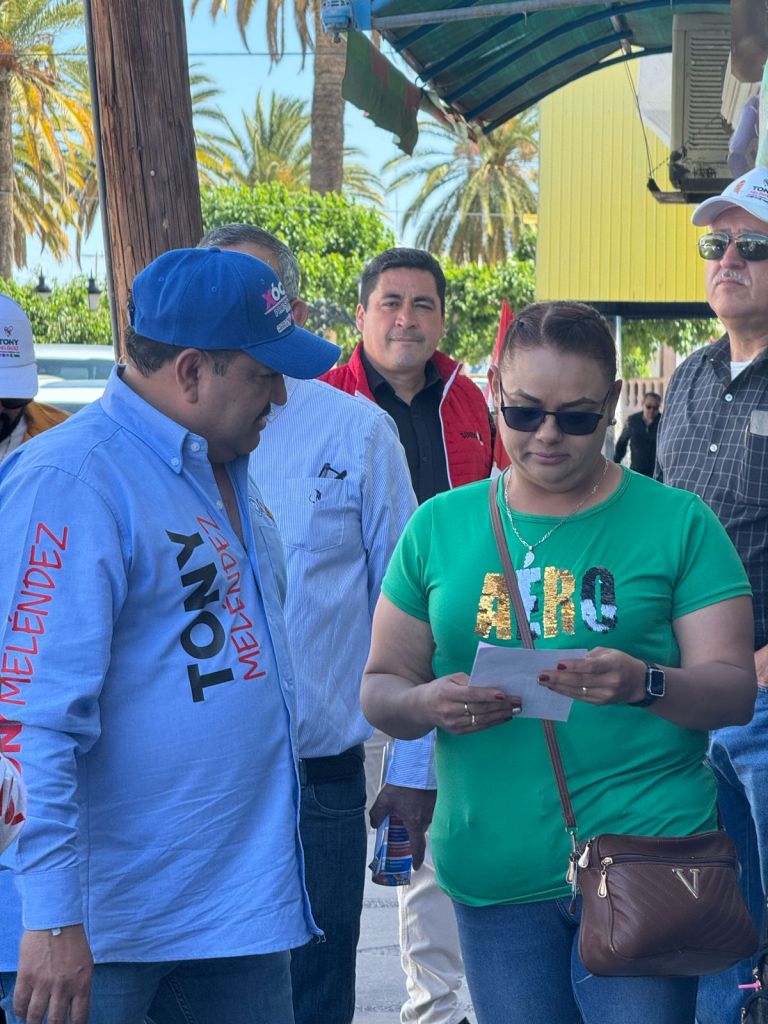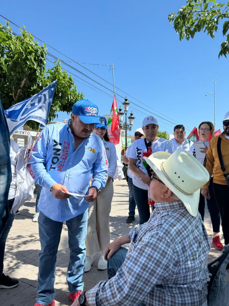 El candidato de la coalición Fuerza y Corazón por México, Tony Meléndez, recorrió el municipio de Meoqui por la zona centro y se reunió con integrantes del Módulo 7, con quienes reafirmó su compromiso con el campo y con la gestión de apoyos al sector agrícola del que aseguró que “se encuentra lastimado”.