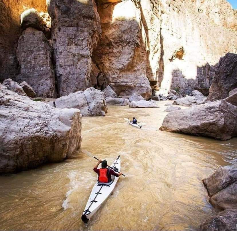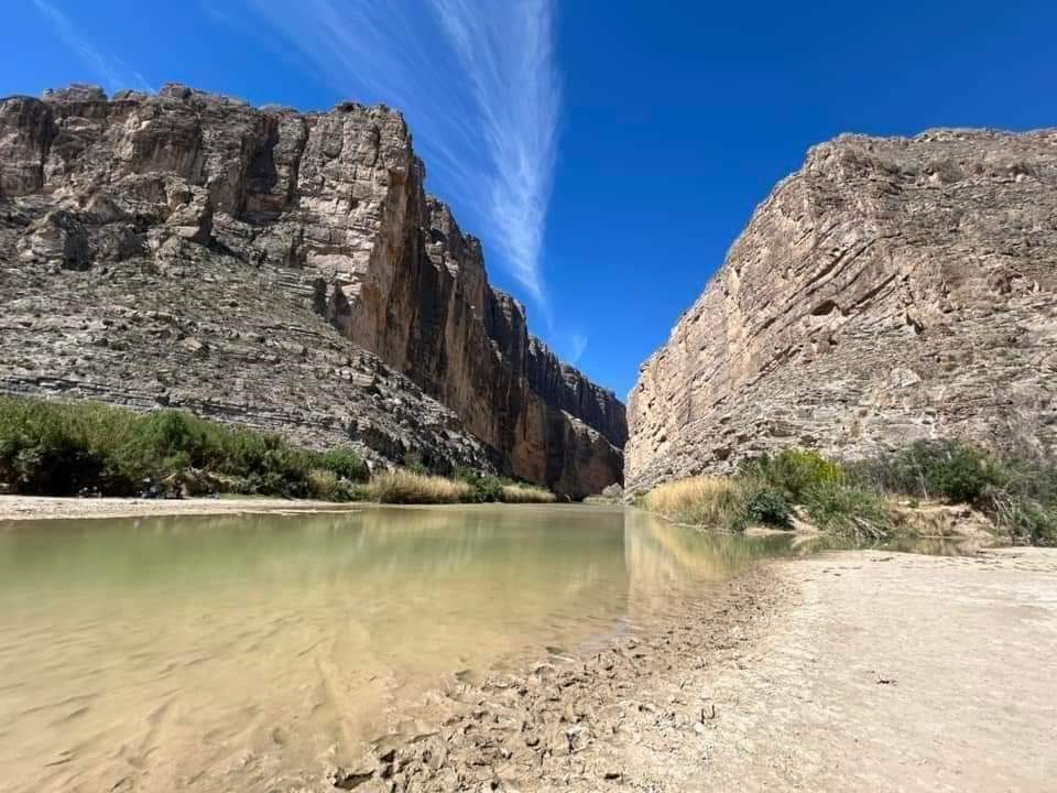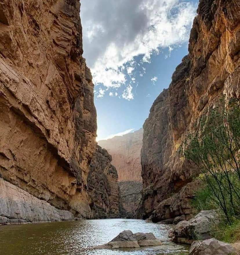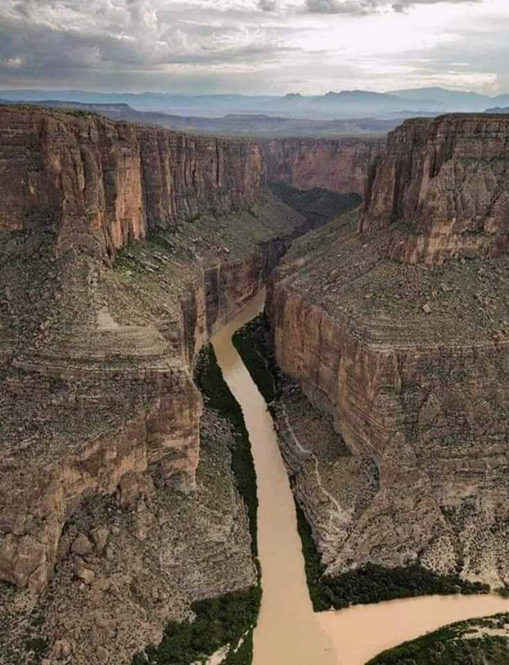 Este es el impresionante Cañón de Santa Elena del río Bravo (Grande) en el Estado de Chihuahua donde hace frontera con Estados Unidos, el muro a la derecha es territorio estadounidense y el de la izquierda territorio mexicano.
