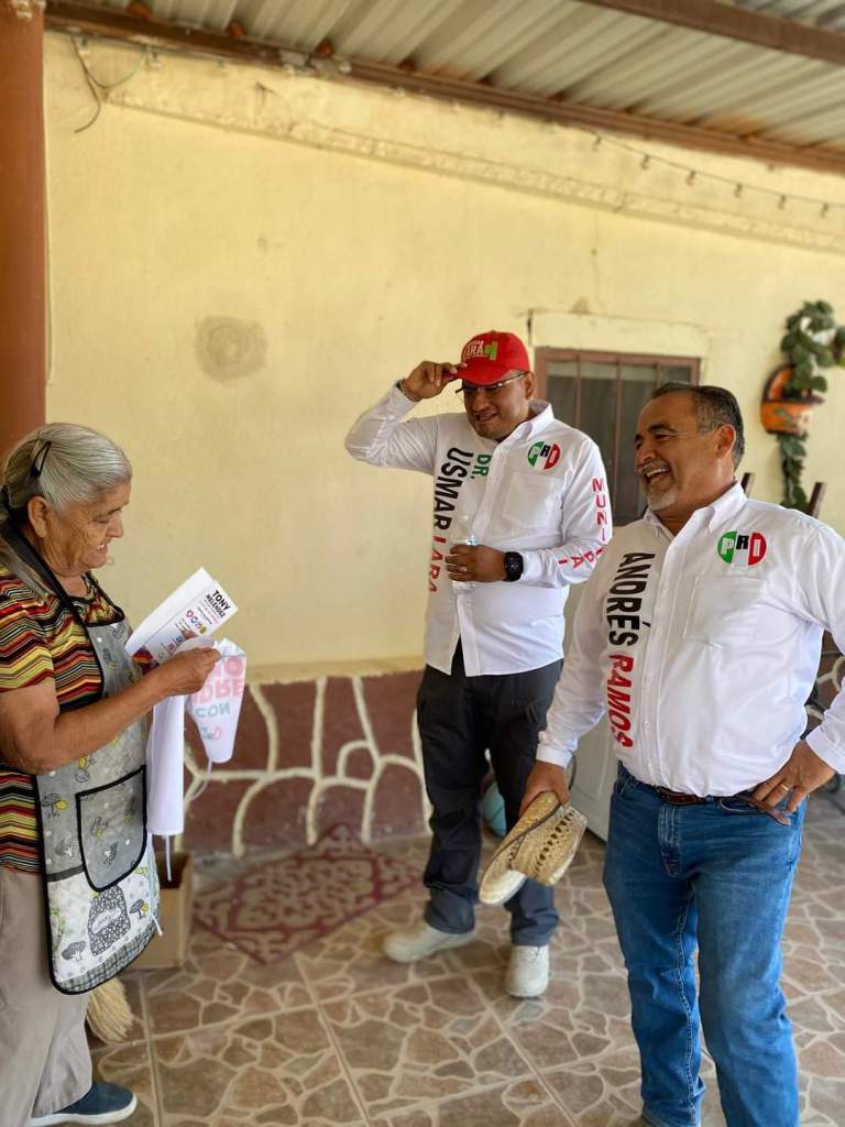 OJINAGA.- Domingo de trabajo para los candidatos del PRI Andrés Ramos y Usmar Lara, durante está mañana, recorren la comunidad de Potrero del Llano (La Mula), dónde una vez más, pudieron constatar el apoyo de toda la gente, desde las comunidades rurales hasta la mancha urbana, el apoyo es para los candidatos del tricolor, porque saben y reconocen el gran trabajo que se ha realizado por parte de los ahora candidatos, por que lo bueno tiene que seguir, este 2 de junio vota PRI.
