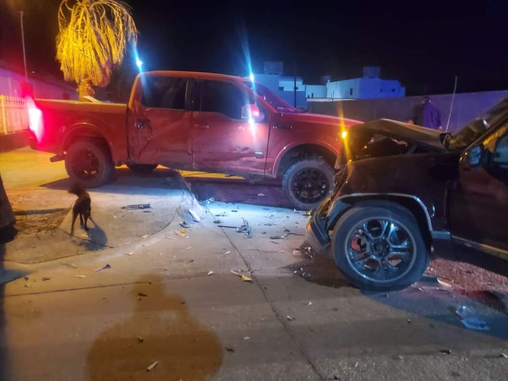 Los vehículos involucrados una pick up F-150 modelo 2015 conducido por un masculino de 35 años y una pick up Chevrolet modelo 97 conducido por un masculino de 28 años.