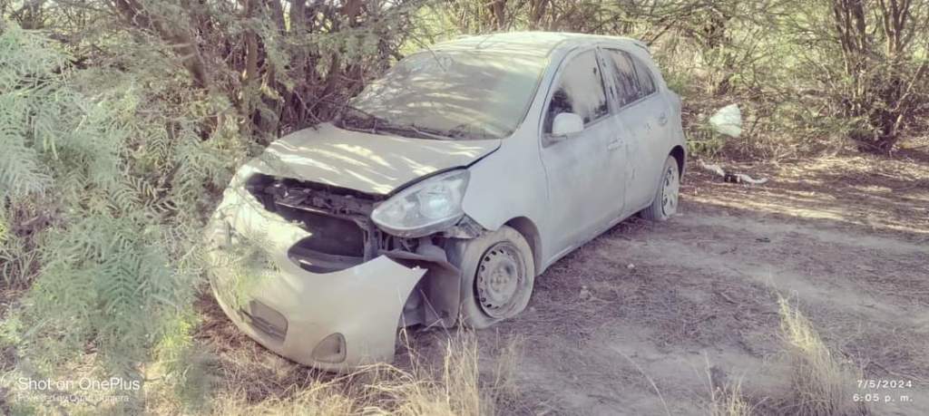 El vehículo afectado es un Nissan March, color gris, modelo 2020.
